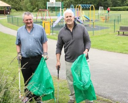 Yesterday morning I joined fellow ward councillor Martin McCarthy, some of the Council’s Neighbourhood Environment Officers and pupils, staff and parents from Cheswick Green Junior and Infant School clearing up the park/play area in by the Village Hall. The pupils were great and seemed to like getting into the brook to clean that out – so much so they didn’t want to stop doing that to have their photographs taken. The photograph shows myself and Martin.