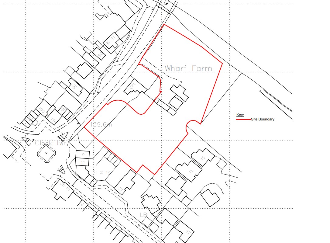 Planning reference PL/2022/01866/PPFL relates to the ‘Demolition of existing outbuildings, erection of 9 No. detached dwelling houses, formation of pedestrian access point onto Dickens Heath Road, and associated works’ at Wharf Farm, 123 Dickens Heath Road, Dickens Heath, Solihull B90 1QG.